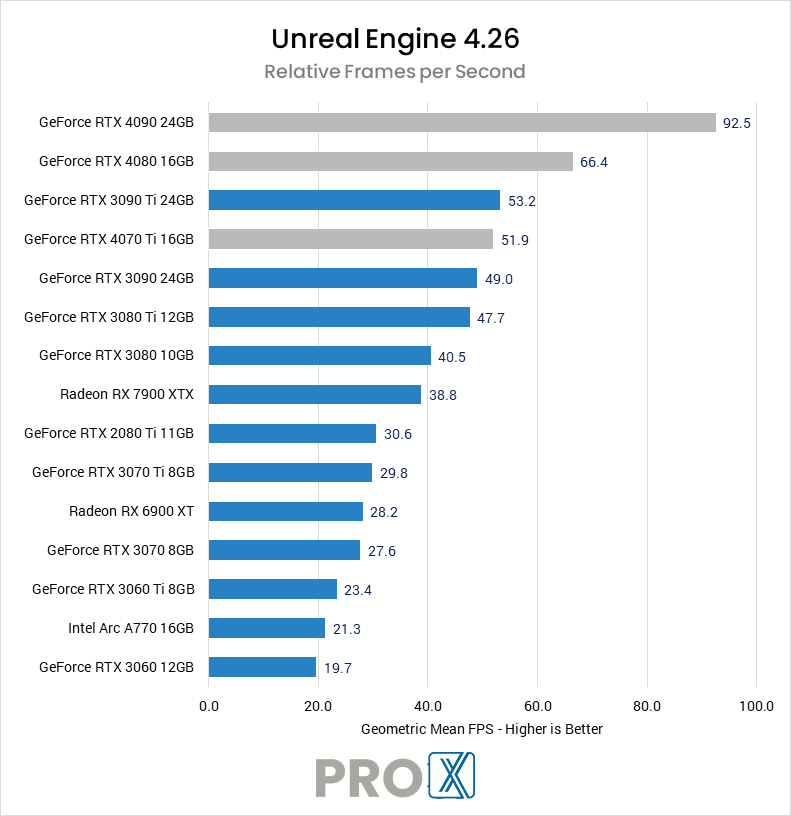 The graphics processing unit (GPU) is the chip on a video card that is responsible for rendering each frame that is sent to your monitors. The performance of this chip determines how many models, textures, and effects can be shown on the screen as well as how many frames per second can be displayed. Some engines and editors can offload other tasks to the GPU as well, such as ray tracing for accurate lighting and reflections and a new feature in Unreal Engine which allows the GPU to bake lighting.